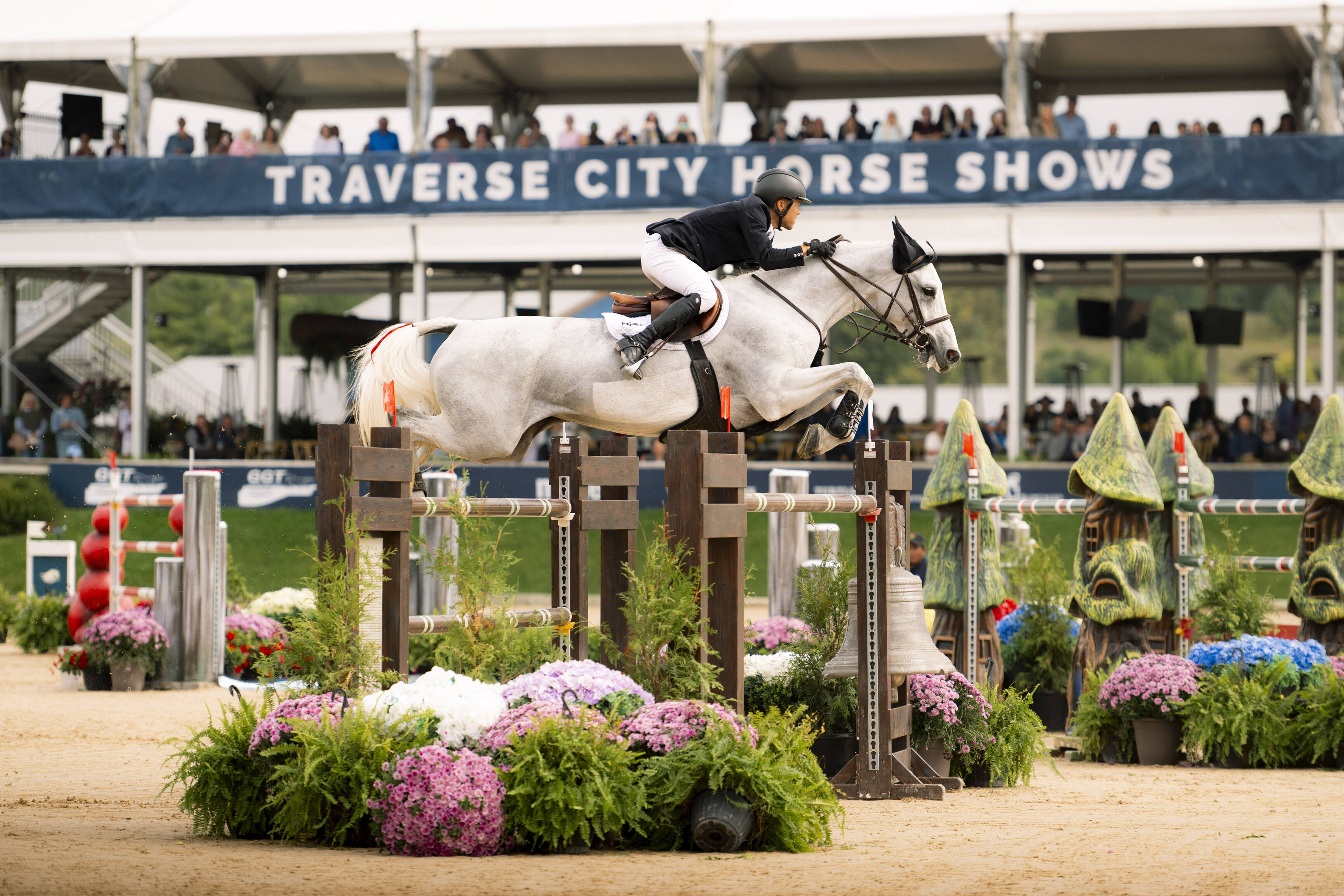 Traverse City, MI – September 21, 2025—World no. 1 Kent Farrington is setting a new standard with his magnificent mare Greya. Together, they won a record sixth five-star grand prix inside a year to lift the iconic American Gold Cup and claim their share of $340,000 in prize money during the final day of the 2025 Traverse City Horse Shows (TCHS).