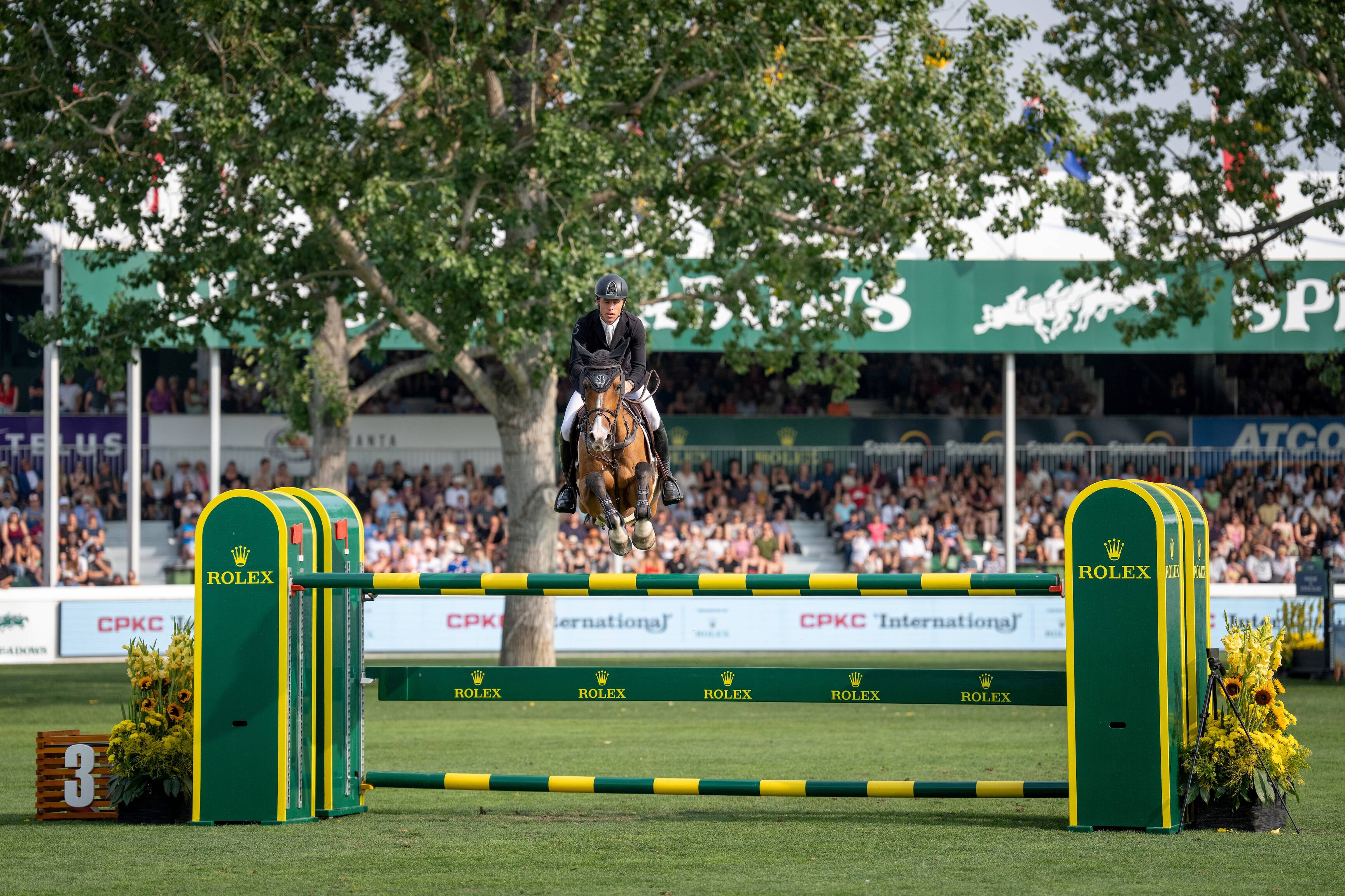 IMAGE: ROLEX TESTIMONEE SCOTT BRASH RIDING HELLO JEFFERSON WINNERS OF THE CPKC ‘INTERNATIONAL’ GRAND PRIX, PRESENTED BY ROLEX, AT THE CSIO SPRUCE MEADOWS ‘MASTERS’ TOURNAMENT 2025