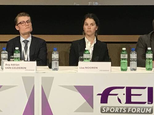 Jack Dodd and Michael Duffy that are part of A Young Riders Academy, attended the opening session at the FEI Sports Forum 2017 in Lausanne yesterday, and they expressed their ideas about various subjects, and they were also part of some panels together with the young Belgium rider