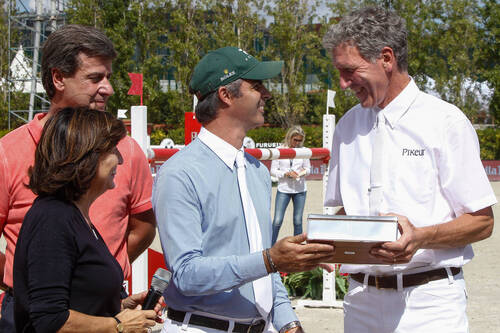This afternoon in Barcelona there was a touching celebration that marked the retirement of Ludger, who did a an emotional speech in which he thanked all friends, owners and his family that have always supported him. He added that he made the decision to retire some month before Rio and he wish all the best luck to his team mates. During this touching moment the International Jumping Riders Club of which Ludger is vice president, gave him a silver box on which there is written: