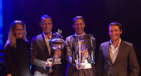 image: Yvonne Losos de Muniz (DOM), Peder Fredricson (SWE), Patrik Kittel (SWE) and Lorenzo de Luca (ITA) drew the order-of-go for the FEI World Cup™ Finals in Gothenburg (SWE) this evening. (FEI/Liz Gregg)