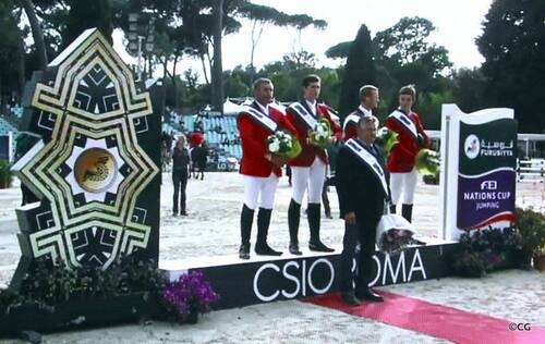1. Belgium 8 faults: Challenge V. Beginakker (Ludo Philippaerts) 4/24, Pommeau du Heup (Niels Bruynseels) 0/0, Citizenguard Toscan de Sainte (Constant van Paesschen) 0/0, Forever D Arco Ter Linden (Nicola Philippaerts) 4/4.