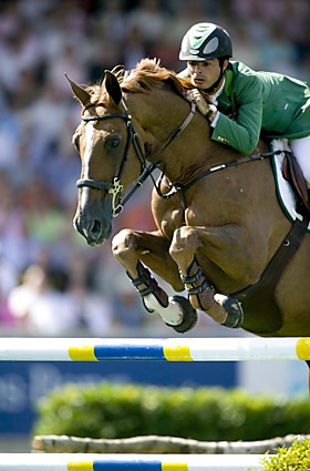 Baloubet du Rouet was the best show-jumper of his generation by far and he is the greatest sire, today. Ridden by Rodrigo Pessoa the Galoubet A-son won the world Cup Final three times and he also won gold at the Olympic games in Athens. For the occasion, the stallion made the trip from Portugal, where he now lives. At 25 years old, he created a sensation arriving in the arena, still showing the incredible energy that turned him into a legend around the world. As luck would have, Chaman, who won the Grand Prix on Sunday evening, is actually the son of... Baloubet du Rouet. Bravo champion!