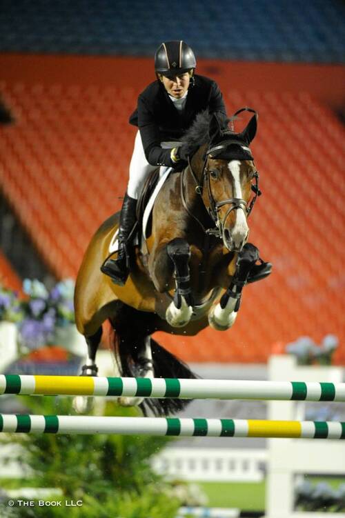 Sunday, 06 April 2014 - Tonight, history was made as the 42nd Gene Mische $200,000 American Invitational, presented by G&C Farm, found its new home at Sun Life Stadium in Miami, FL. The class has become a landmark of the showjumping world, and tonight was no exception as 29 horse and rider combinations gathered on the field to compete in a battle of the best. It was an electrifying night as spectators looked on to the stadium turf, but it was with swiftness and accuracy that Beezie Madden was able to emerge as the victor tonight. Aboard Coral Reef Via Volo, Madden rode to her third American Invitational victory, a feat few can claim.Madden navigated Coral Reef Via Volo to a double-clear effort during a five-horse jump off. They tripped the timers in 35.91 seconds after completing a clear short course, while Meredith Michaels-Beerbaum and Atlanta rode to the second place for the only other double clear effort. Lauren Hough and Ohlala were the third place finishers, taking the honors as the fastest of the four faulters after lowering the height of obstacle 17, an oxer set near the in gate.