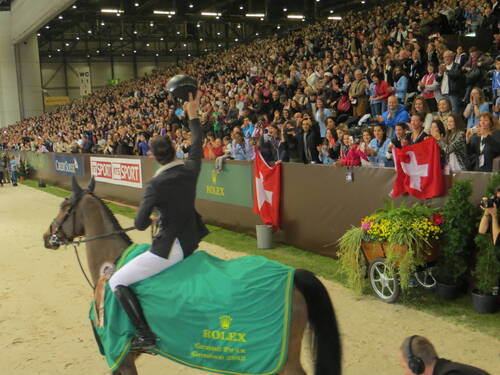CHI Geneva, CHIO Aachen and the Spruce Meadows `Masters´: Three victories at three of the most prestigious equestrian events in the world, that is the Rolex Grand Slam of Showjumping, the ultimate international equestrian sport challenge. Only the rider, who manages to claim the victory at three events within twelve months, can become a sporting legend. "It is sensational that my Rolex Grand Slam has begun," stated Guerdat after his victory in the Rolex Grand Prix at the CHI Geneva on Sunday afternoon. Riding Nino de Buissonnets, he displayed nerves of steel in the impressive Palexpo arena, the largest indoor stadium in the world. Top riders had reached the jump-off: Alvaro de Miranda from Brazil was among them, the French show-jumper Kevin Staut as well as Scott Brash from Great Britain. In the end, however, the Olympic gold medallist, Guerdat, crossed the finish line in the fastest time – amid the resounding applause of the 8,200 enthusiastic spectators in the sold-out arena. "It was fantastic how the crowd supported and cheered me on here," commented Guerdat, who had to wait a long time before his victory was confirmed, "those 15 minutes were like an eternity." 2nd place went to Scott Brash on Hello Sanctos, 3rd Simon Delestre with Qlassic Bois Margot. Gerco Schröder (London) was placed 4