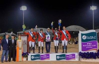2. Great Britain 9 faults: Diva (Ben Maher) 4/4, Unex Chamberlain Z (Tim Gredley) 0/0, Osiris (Gemma Paternoster) 1/9, Hello Annie (Scott Brash) 9/0.