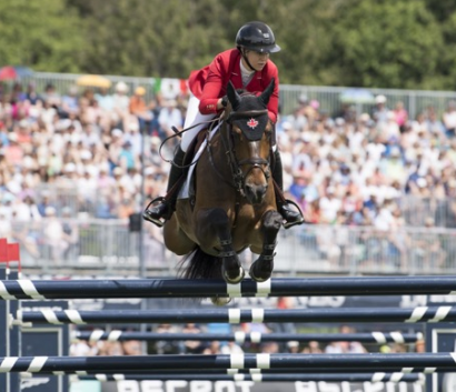 image: Nicole Walker and her brilliant stallion Falco van Spieveld produced one of the two double-clears that clinched a home-side victory today in the Longines FEI Jumping Nations Cup™ of Canada at Thunderbird Show Park in Langley (CAN). (FEI/Rebecca Berry)