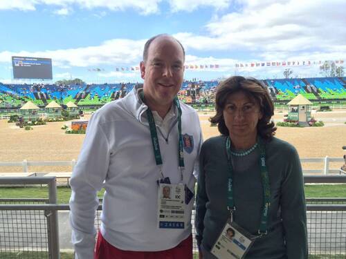 In the image Prince Alberto II di Monaco member of the International Olympic Committee (CIO) since 1985, with Mrs Eleonora Ottaviani, Director of the International Jumping Riders Club (IJRC) and General Secretary of the Monaco Federation.