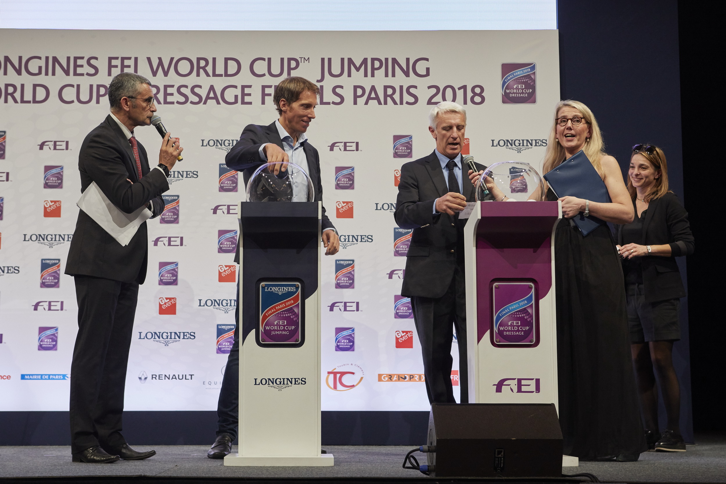The magnificent setting of City Hall in Paris played host tonight to the draws for both the Longines FEI World Cup™ Jumping and FEI World Cup™ Dressage 2018 Finals. Guests were greeted by the arresting music of the world-famous band from La Guarde Republicaine (The Republican Guard) and the atmosphere was electric as defending champion, Isabell Werth from Germany, and French rider Ludovic Henry matched the starting numbers and names for Friday’s first leg of the Dressage finale. Sweden’s Henrik von Eckermann was joined by Rio Olympic team gold medallist Roger Yves Bost from France to select the order-of-go for tomorrow night’s opening Jumping competition in which America’s McLain Ward will also begin the defence of his title with the brilliant mare HH Azur.