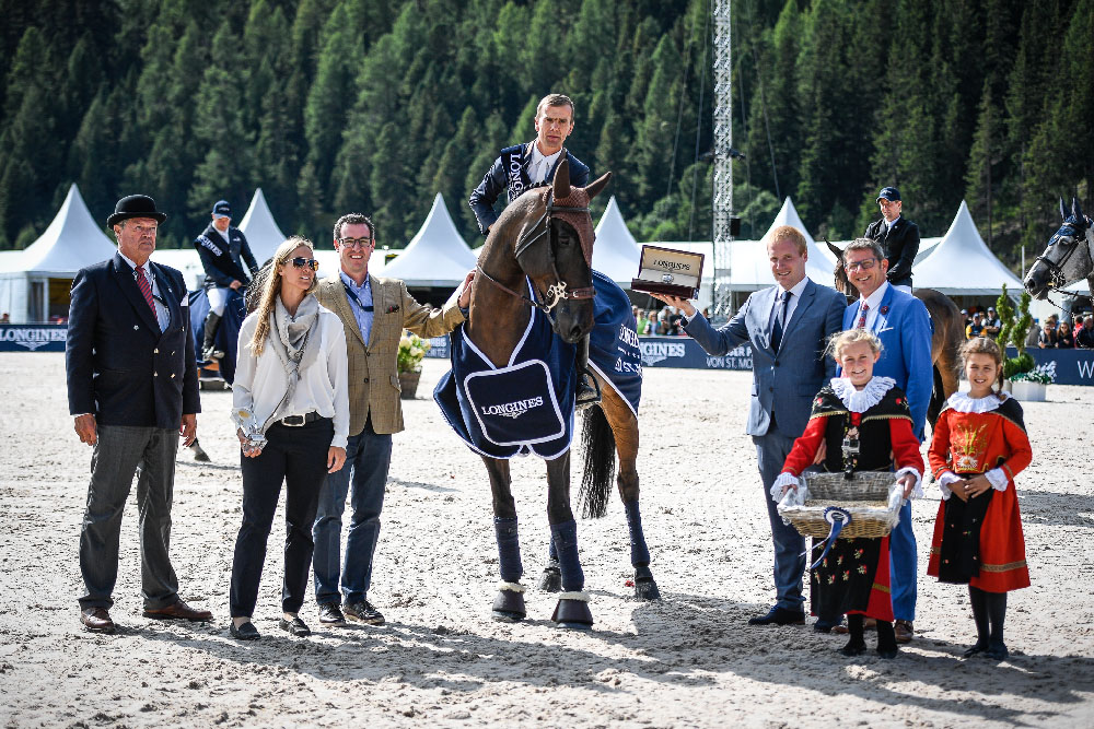 The Longines Grand Prix of St. Moritz was more than exciting. Nine riders were qualified for the jump-off, among them one Swiss, Alain Jufer with Rahmannshof Tic Tac. He was the first to start the jump-off and he did it with a sure and clear round, what paid off. Only Robert Whitaker (GBR) with Catwalk and the Belgian Wilm Vermeir aboard Iq van het Steentje were in front of him. Vermeir had already shown his great form during the weekend. Already on Saturday he won a class over 150 cm.