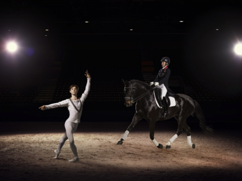 Double Olympic gold medallist Charlotte Dujardin (GBR) from the world of Dressage and US Jumping rider Charlie Jacobs were joined by dancers from the world-famous Minsk Bolshoi ballet at Lyon’s Eurexpo, venue for this week’s Longines FEI World Cup™ Jumping and Reem Acra FEI World Cup™ Dressage Finals.