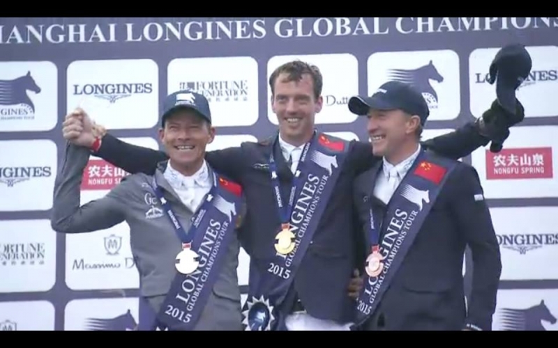 11 May- Harrie Smolders and his 15 year old mare Regina Z started in great form at the Global Champions Tour GP in Shanghai, they stayed clear in the first two rounds and went through to the jump off together with 7 other combinations.