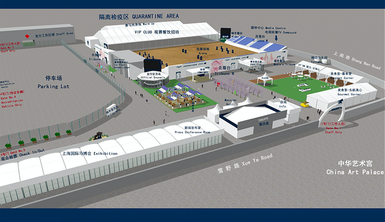The above graphic of the showground, located at the China Art Pavilion, illustrates the fantastic facilities on offer at this unique venue.Olympic champion and showjumping legend, Ludger Beerbaum, returning to the show for the second year, gave a strong endorsement of the event and conditions organised by Longines Global Champions Tour.