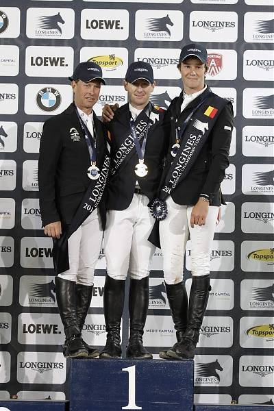 27th April - The winning team of the amazing sold out Longines Global Champions Tour Antwerp 2014 Grand Prix, was McLain WARD and his horse Rothchild (USA), second place for Rolf-Göran BENGTSSON and third for Constant VAN PAESSCHEN.